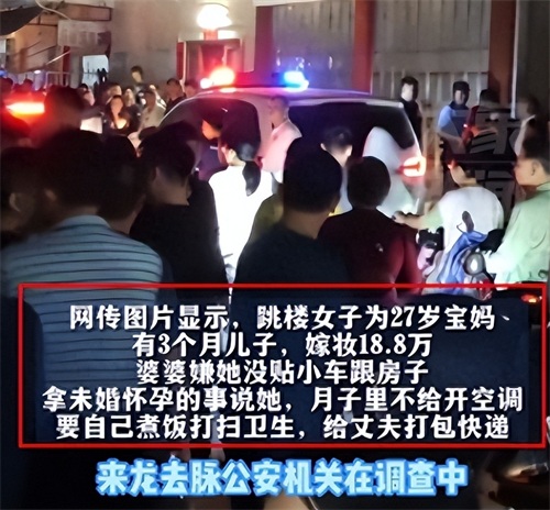 然而,宝妈嫁入夫家后,面临了种种困难。她的婆婆嫌弃她没有提供小车和房子,并经常以未婚先孕的事情来责备她。这种生活中的挑战和刁难导致了社会上普遍认为,宝妈的丈夫家庭与她的跳楼事件存在密切关系。这一观点也在当晚的事件中表现为人们向宝妈丈夫的家扔鸡蛋。