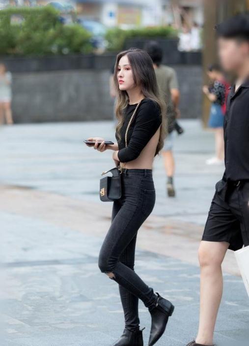 街拍:美女露背上衣搭配紧身裤,尽显窈窕身材,诱惑无限!