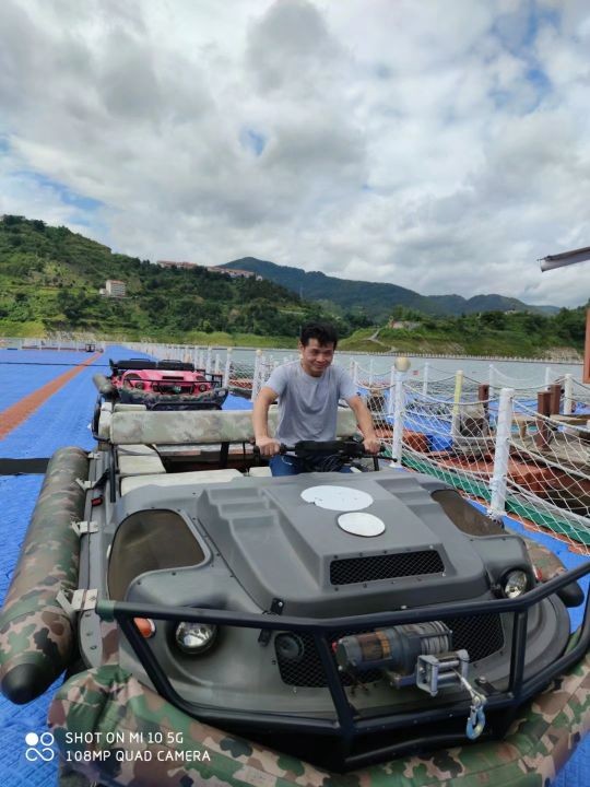 远远望去,这水上浮桥宛如东方的一条巨大的长龙,龙祥凤舞,真的是美极了,踏入浮桥上,好象座在我家里的摇摇椅上,沉睡在这安逸之中,让人陶醉,入迷。水上设施还算齐备,有游艇,摩托艇,可惜的是没有几个人来这里旅游,可能是因为疫情吧,没有开放,显得没有热闹的气氛。