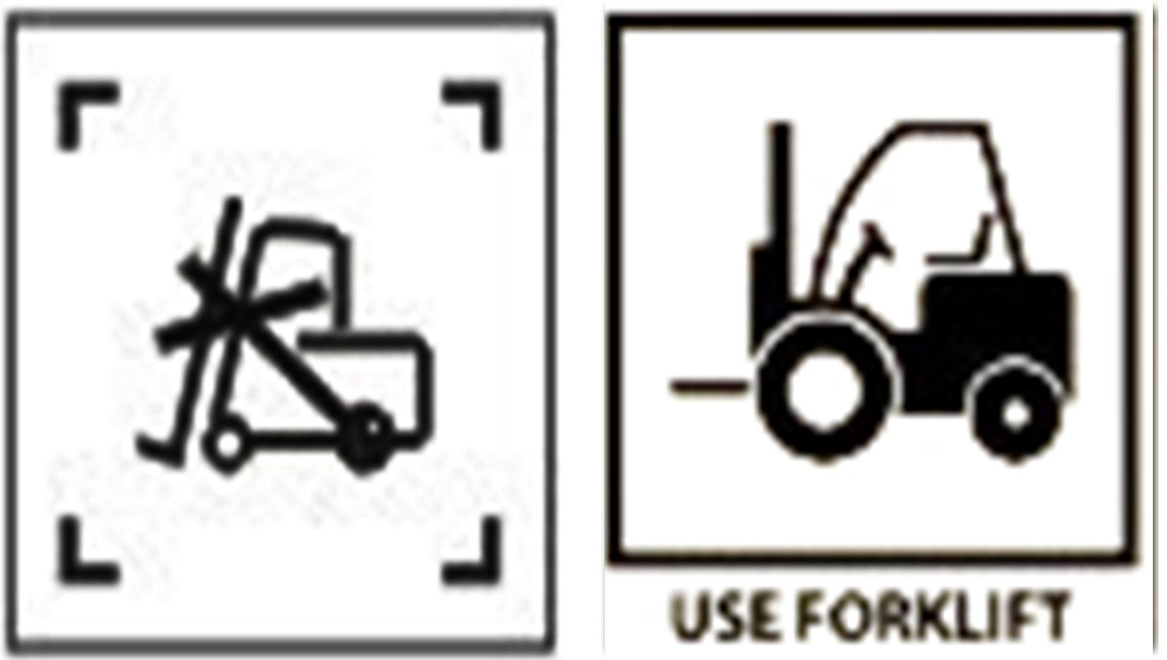 11、禁用叉车/使用叉车。图1是禁止使用叉车;图2为可以使用叉车。有时候也会代表叉车从此处挑起,需配合实物进行判断。