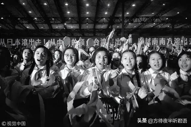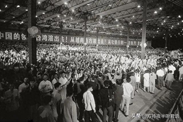 上海火车站横幅标语写着:(帝国主义)从日本滚出去!从中国的领土台湾滚出去!从越南南方滚出去!从它侵占的一切地方滚出去!虽然没有看到前面,但针对哪个国家也能猜到,反映出时代的特色。